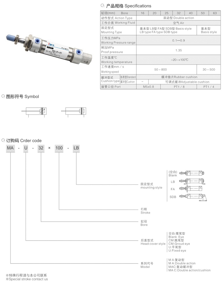 MA系列不锈钢迷你气缸