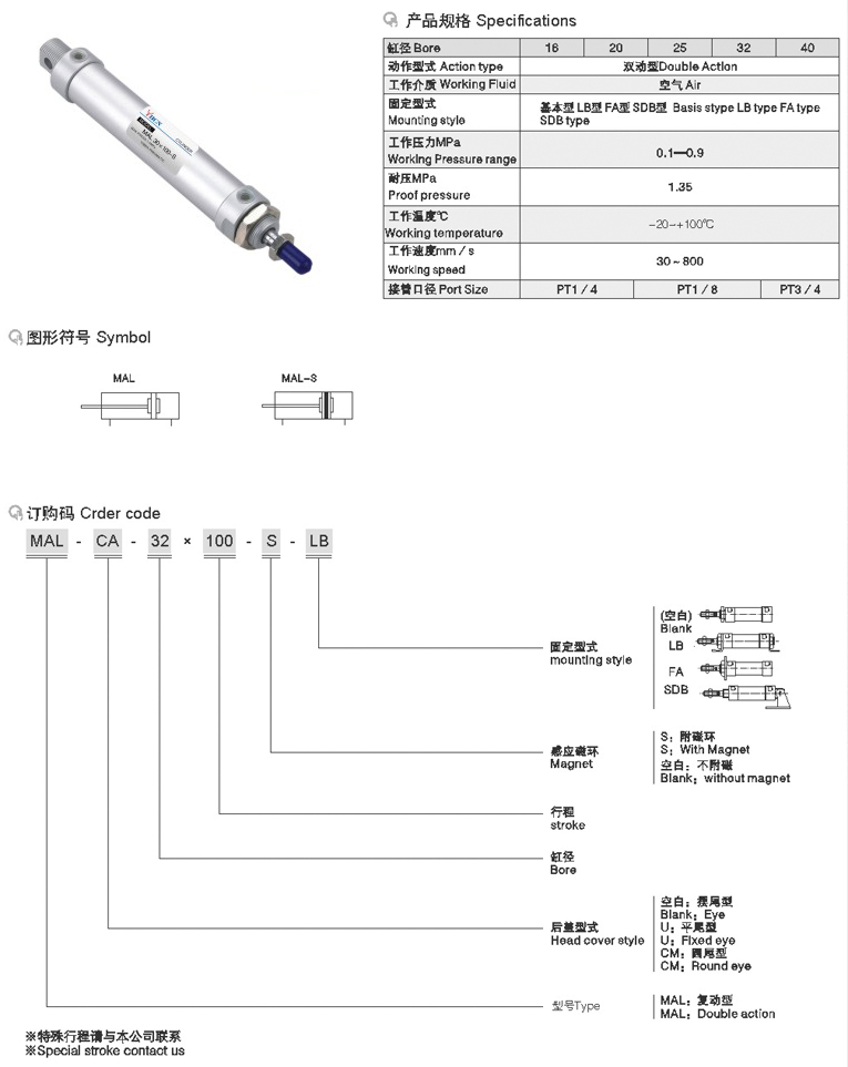 MAL系列铝合金迷你气缸