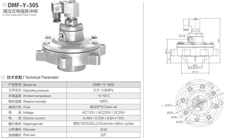 DMF-Y-50S淹没式电磁脉冲阀