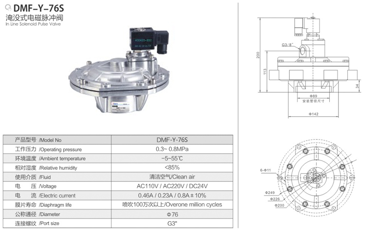DMF-Y-76S淹没式电磁脉冲阀